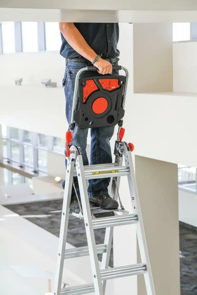 The Airdeck can be used as a safety handrail and provides confidence and comfort when climbing up and down the ladder.
