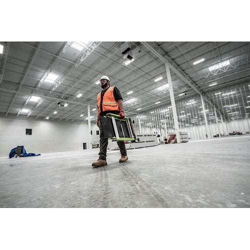 The Little Giant Jumbo Step Fibreglass Ladder is the has the unbeatable combination of stability and strength. Constructed of a non-conductive, high-vis green fibreglass frame ideal for work electrical work.