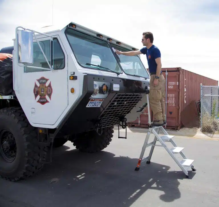 Part Number | Model | Highest Standing Level | Rail Height from Top Step | Max Reach | Step Size | Storage Height | Storage Width at Base | Storage Depth | Weight |