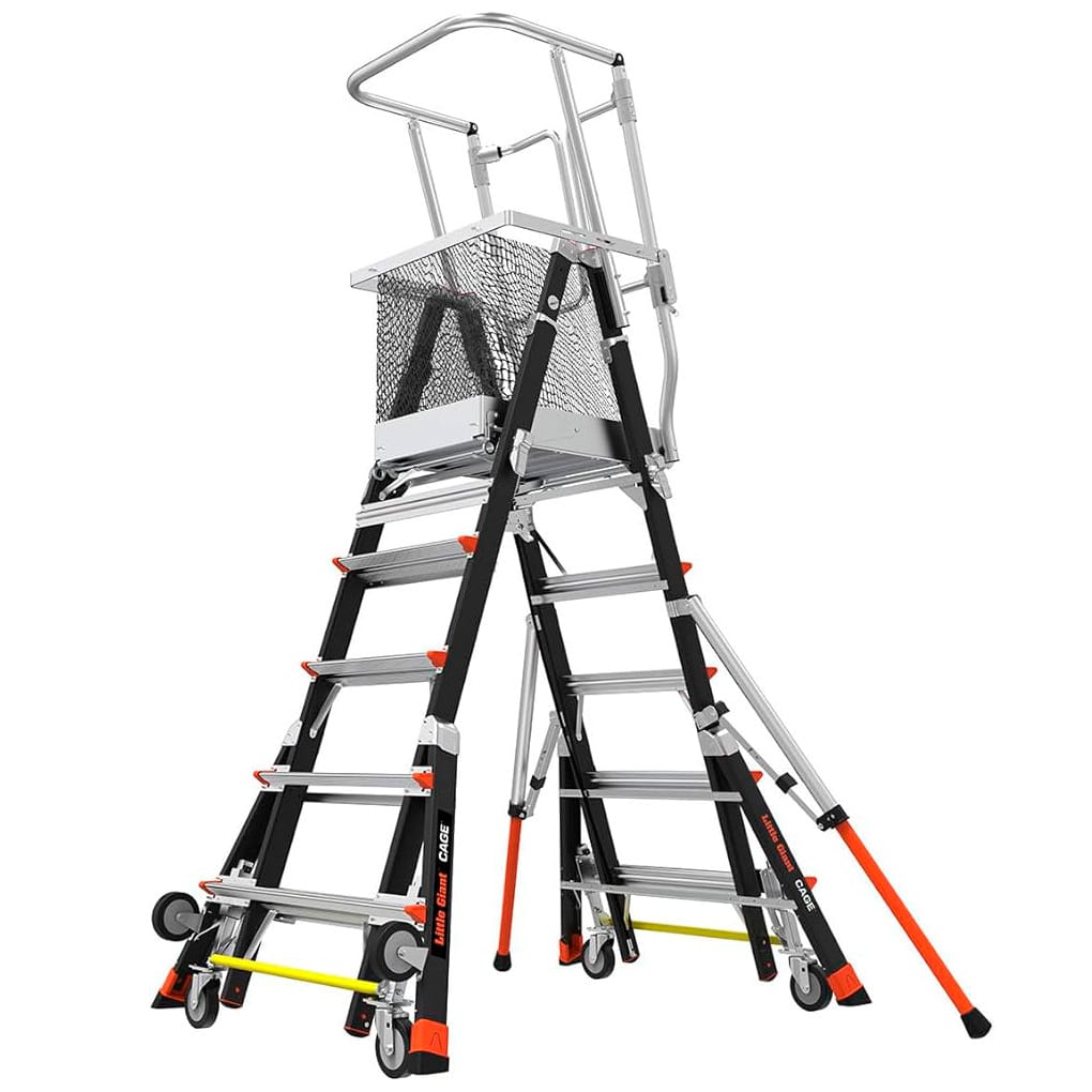 This ladder allows the operator to work on a completely enclosed platform enabling hands-free, 360-degree access.