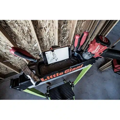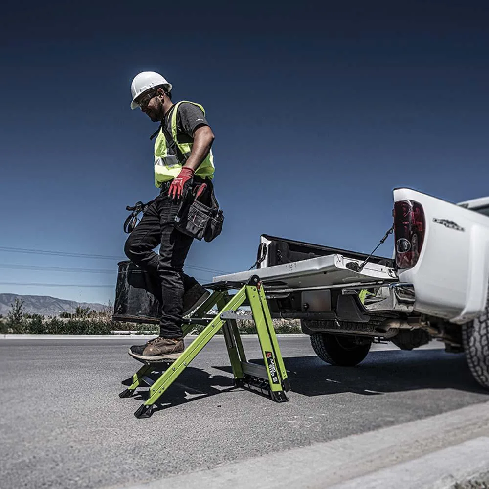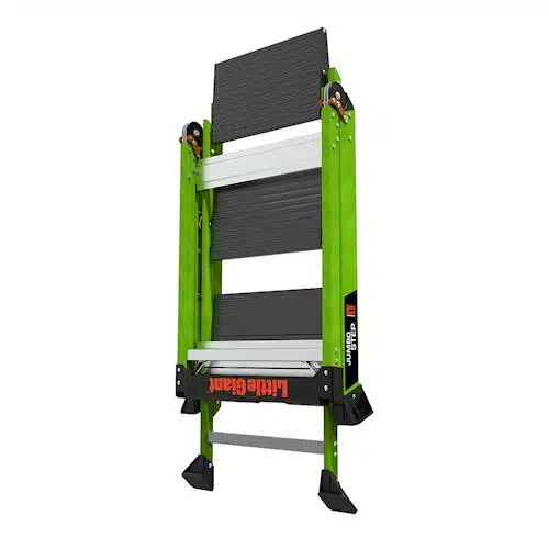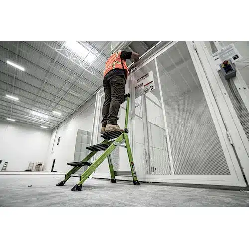 The Little Giant Jumbo Step Fibreglass Ladder is the has the unbeatable combination of stability and strength. Constructed of a non-conductive, high-vis green fibreglass frame ideal for work electrical work.