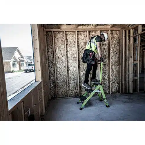 The Jumbo Step’s 22cm wide, slip-resistant treads and stair-like design provide unmatched comfort and stability. It is ideal for jobs that require both frequent climbing up and down, as well as those that require long periods of standing. The Jumbo Step’s design makes working at heights as comfortable as standing on the ground it is the ultimate safety step ladder.